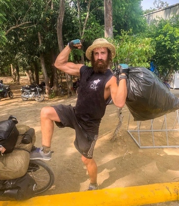 “My friend picked up several bags of trash every day during his trip from Indiana to South America. He’s currently halfway through Central America and still cleaning up the world along the way.”