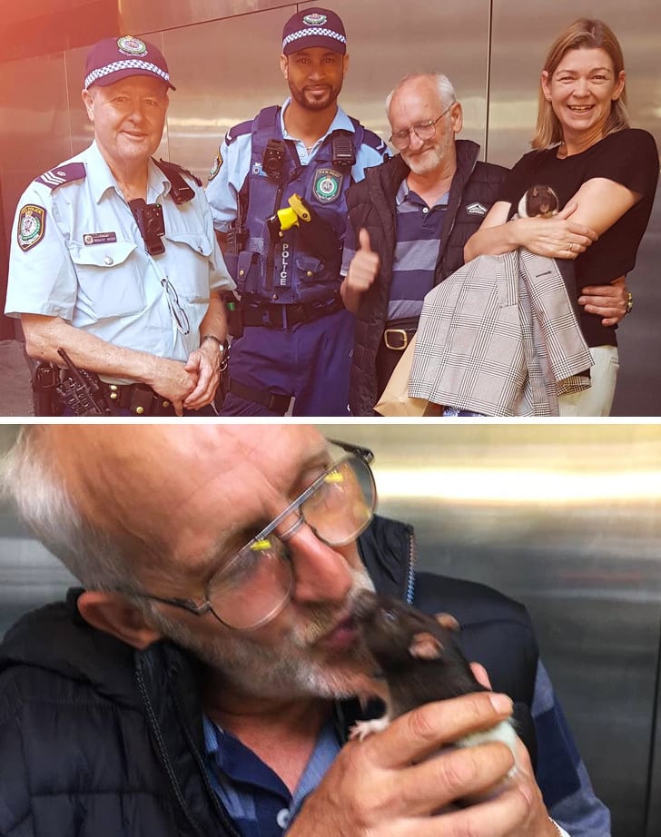 A homeless man had lost his rat, Lucy. Civilians and police tried to find her and finally succeeded.