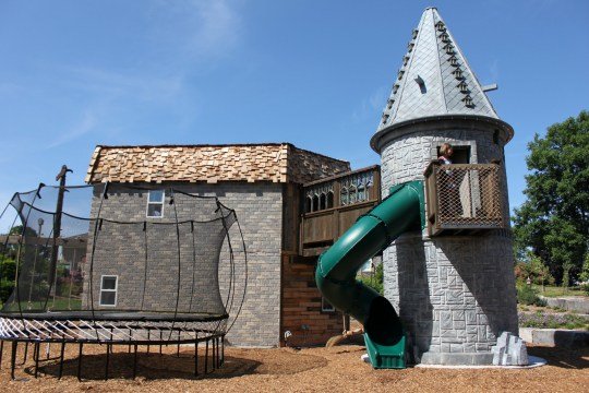 The Dunlops commissioned Charmed Playhouses in Alberta, Canada to work on the project, which took about six weeks to create. It also took another three days to build the impressive structure in the Dunlops’ back garden.