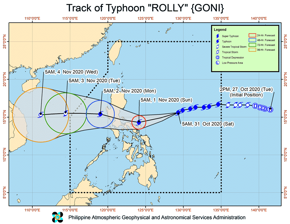 In an advisory issued at 8:00 AM, October 31, 2020, PAG-ASA said that the typhoon “will continue moving west-southwestward today towards the sea off the coast of Bicol before turning west-northwestward tomorrow early morning.”
