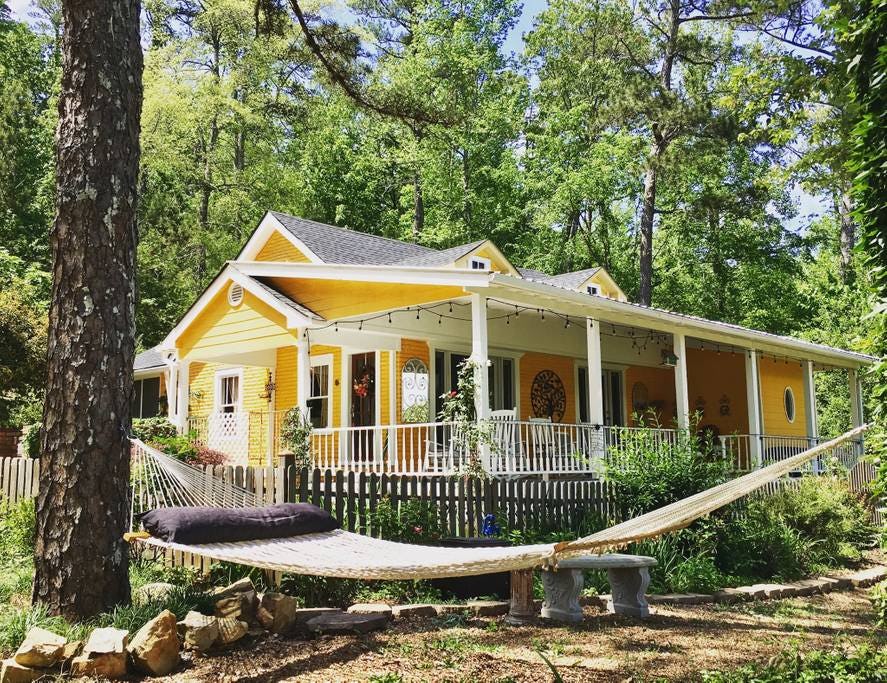 It may not be the more popular Rome, but if you happen to visit Rome, Georgia, it would be great to book your stay at this yellow cottage. This cozy cottage is located inside a four-acre land with a beautiful flowery garden. Snap some pictures or take a nap, this dream cottage is relaxation perfection.