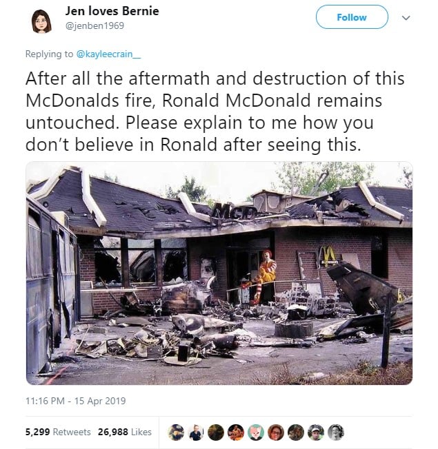 The woman shared one of the pictures showing the aftermath of the Notre Dame fire. In the image, it is clear that the golden cross on the cathedral’s altar is relatively unscathed amidst the destruction around it. She then added a caption claiming that it confirms God’s existence.