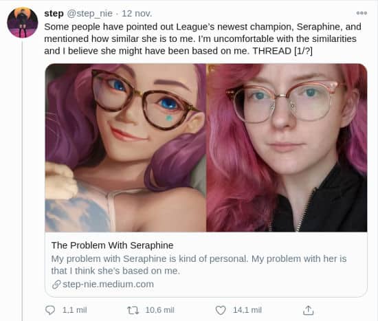 • A woman named Stephanie is claiming Riot Games based the League of Legends character Seraphine on her.