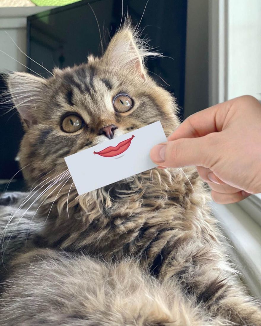 Guy Gives His Pet Cats Cartoony Facial Expressions Using Cute Cut Outs