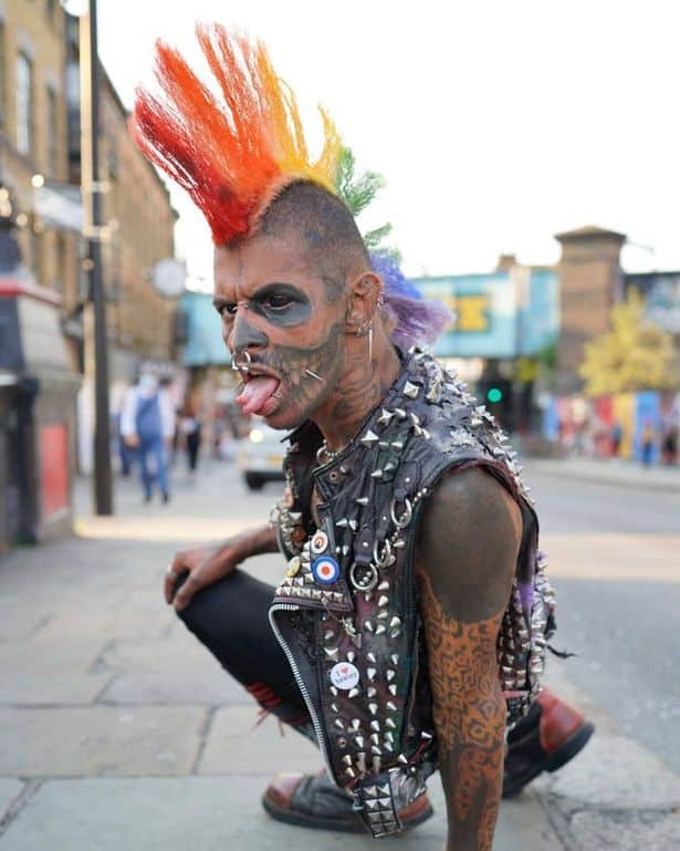 According to Anderson, he often gets a lot of stares in public while others stop him for photos. He doesn’t mind all the attention for the most part but occasionally, he carries a sign that says ‘help a punk to get drunk’, asking for a £1 donation from those who want a picture.