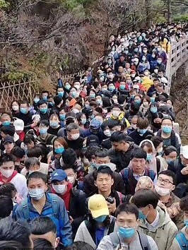 After photos of crowds at Huangshan have circulated in social media, state-owned media People’s Daily issued a “stern reprimand” to tourists: “Do not gather!”