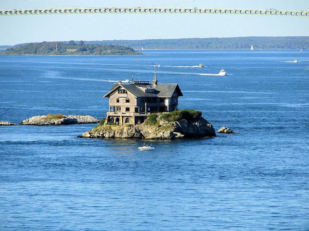 Sitting on a rock 20 feet above sea level is a mansion over a century old. Those who sail by Narragansett Bay in Rhode Island wouldn’t miss this 10,000 sq. foot house. It even looks hauntingly beautiful in wintertime as it stands out in the icy gray seascape.