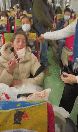 • The woman was sleeping on the train and not wearing a mask. The authorities on the train approached her and asked her to wear one.