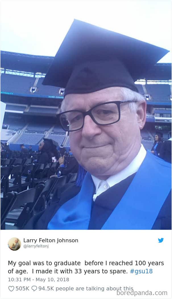 20. “I’m 65 and just graduated college. You’re never too old to learn.”
