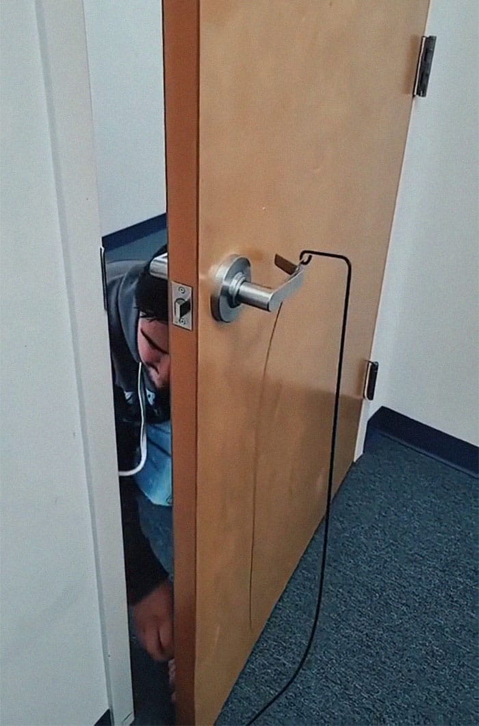 So when the door started to open, she immediately closed it and used the deadbot lock. The man later claimed he was sent there to fix a door defect.