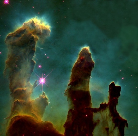 The Eagle Nebula is a column-like formation of interstellar dust and hydrogen gas and incubates new stars.