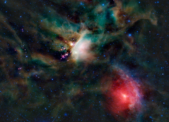 The Glowing Stellar Nursery was discovered by the Spitzer Space Telescope, named after one of the most notable scientists of the 20th century, Dr. Lyman Spitzer, Jr.