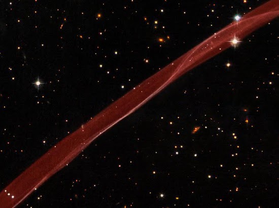 Taken by NASA’s Hubble Space Telescope, this thin section of a supernova is likely formed by a stellar explosion that happened thousands of years ago.