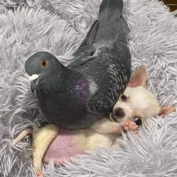 A Puppy Who Can’t Walk Becomes Friends With a Pigeon Who Can’t Fly