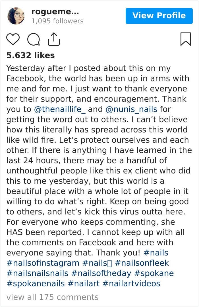 To make matters worse, the said evil client even had to lie about her condition and only told the nail artist about everything after returning home from the appointment.