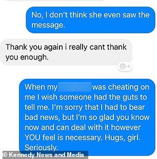 She has since outed five cheaters and the women couldn’t help but express gratitude.